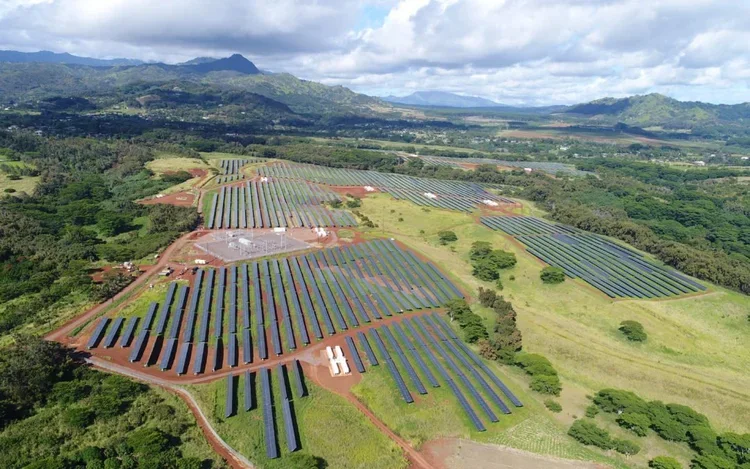 In Kauaβi, Hawaii, the AES Lawaβi Solar Project has a 100 megawatt-hour battery energy storage system paired with a solar photovoltaic system. Image source: AES Distributed Energy.